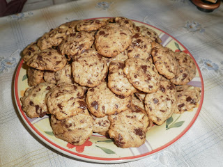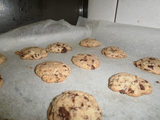 Aici am dat azi-dimineata de celebrele cookies vazute in filme si cumparate de la hiper/super/ultra-market. Mi s-a facut pofta si i-am zis lui Andrei ca o sa ii trimit poze cand fac si eu. Dupa-masa am dat o fuga la magazin si am luat ce imi mai lipsea pentru reteta.